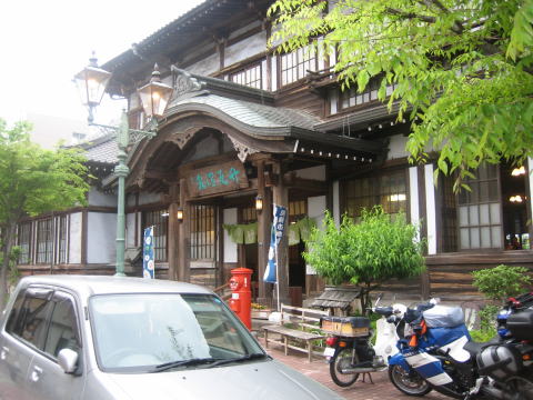 17:52 高等温泉 続いて、こちらは駅から徒歩3分くらい。 別府駅から別府湾に向かう大通りの途中、右手にあります。 外観はとても温泉とは思えない、大正ロマン漂う建物です。 入浴料は\300。 |