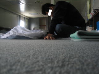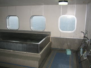 16:58 で、さらに退屈なので、船内で入浴。 揺れている船の中で風呂に入ると、ちょっと酔います。^^; |
