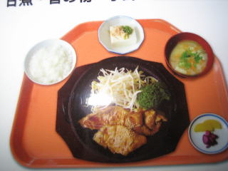 19:17 で、夕食。 生姜焼き定食。 でも、なんかちょっと変? テカっています。 |