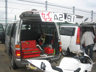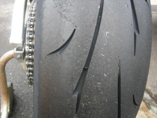 5月26日 21:58 リヤタイヤ交換 前回の練習走行で、リヤタイヤが終わってしまったので、昨日の晩K2Yでリヤタイヤのみを交換しました。 タイヤははき慣れた、DUNLOP D209GP コンパウンドはミディアムです。 |