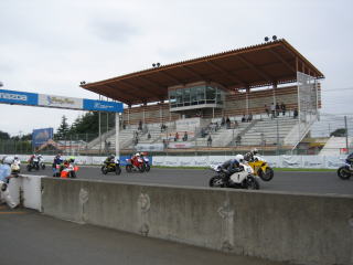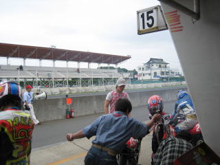 15:34 2列目は 今回は予選8番手、2列目一番インコースです。 前には、バイクが1列いるだけ、筑波のレースクイーンもいつもより近くに見えます。 (次回は1列目がいいなぁ) |