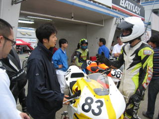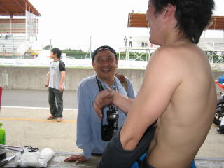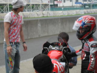 15:24 ST600スタート進行 いよいよ、ST600クラスのスタート進行が始まりました。 今日も、国際A級の國川選手が遊びに来て、オパミンになにやらアドバイスを・・・・ |