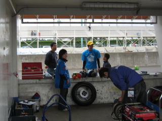 9:59 予選前 今日の筑波選手権はST600クラスがメインイベントです。 そのため、予選は午前中の昼近く、ファイナルは最後の夕方近く、いつもよりややのんびりとしたタイムテーブルで進みます。 まずは予選前のストレッチ。 |