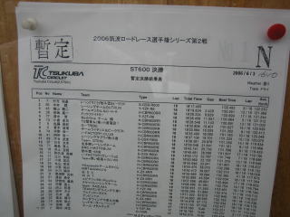 | 15:45 決勝中 写真はありません。<(_ _)> 決勝中はラップタイム計って、ポジション確認して、サインボード出してと、1周1分の筑波サーキットでは、結構忙しいいんです。って前にも書きましたね。 |