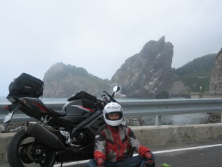 仏ヶ浦を通過し、大間崎に向けてさらにバイクを走らせると、眼前に現れるのがこの巨岩”腰掛岩”