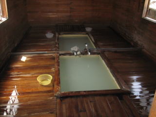 ご覧の通り、温泉は掘っ立て小屋の中にあり、脱衣所も浴室の片隅で、体を洗うための水道もありません。 しかも、このお湯、かなり熱いです。