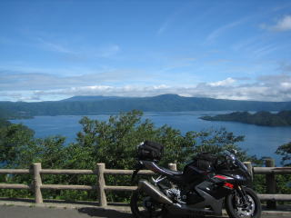 8:47 すでに ツーリングに出て3日目、走行距離もすでに1,300kmを超えています。 今回のツーリングも今日が最終日。 今日は宿のある十和田湖を出て、田沢湖に寄り、そして東京へと戻ります。 |