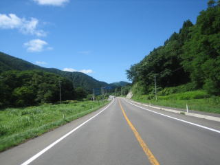 9:19 国道282線へ 国道103号線を大館方面にバイクを走らせること30分ほど、国道282号線との交差点まできました。 ここを左折して国道282号線に入ります。 この国道282号線は2日目に、弘前に向け走った道で、それを今度は逆に盛岡方面を目指して南下します。 |