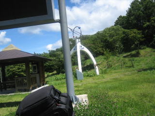 11:01 少し雨が 少し雨が降ってきました。 岩手県側の空は曇天で雨が降っていますが、秋田県側は青空が見えます。 八幡平をぐるっと回って、秋田県側に戻れば天気は回復しそうです。 とりあえずカッパを着て、先に進みます。 |