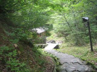 14:05 露天風呂に 蟹場温泉の建屋で入浴料を払い、露天風呂は建屋の左側から出て、50mほど坂を下ったところにありました。 |