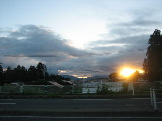 18:13 日没間近 国道4号線を南下すること、小一時間、陽が傾き日没の時間が近づいてきました。 そろそろ、東北自動車道に上がろうと思います。 |