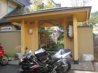 6:50 起床 昨晩は不覚(?)にも、夕食早々ほろ酔い気分で寝てしまい、途中真夜中にいったん目が覚めましたが、そのまま朝まで寝てしまいました。 朝目覚めると、昨夕の雨が嘘の様に晴天、今日はツーリング日和です。 朝食は遅めの8時半に予約、朝食までのんびりとした時間を過ごします。 |