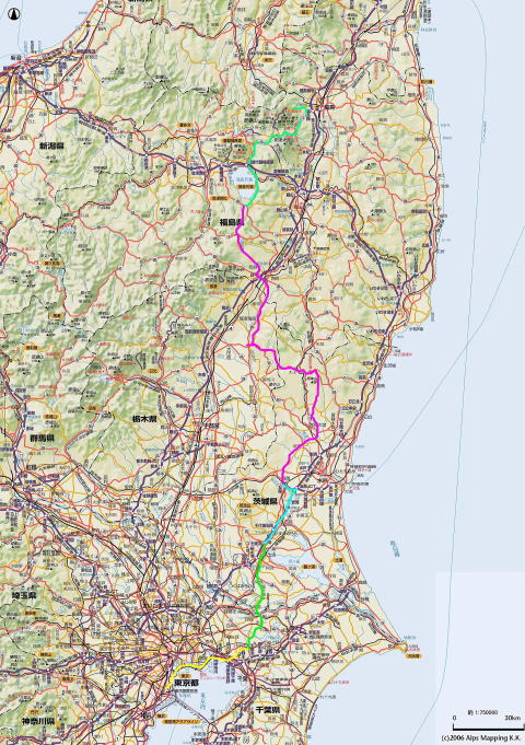 13:18 で、やっぱ みんなそろったら、ジャンケン。 負けたのは、写真のオパミンだったかな? (このレポを書いているのは、12月、既に半分は忘却の彼方) ジャンケンもそこそこに、お腹が空きました。 お昼を食べるために先を急ぎましょう。 白河からは県道白河羽鳥湖線で羽鳥湖方面に向かいます。 羽鳥湖の西岸に沿って走り、羽鳥ダムを過ぎたら、国道118号線のT字路にぶつかります。 T字路を左折して、2kmほど進み、今度は右折して県道235号羽鳥福良線を北上します。 羽鳥福良線は県道と言っても、センターラインのない1.5車線の道路で、山林の中を走っています。 |