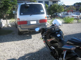 6:48 天高い秋の空 ツーリングの朝は秋の空。 ちょっと前まで10月10日は”体育の日”。 関東地方では10月も中旬に入るこの頃には、秋の長雨の時期も過ぎ天気も安定期に入ります。 小学生時代10月10日に行われる運動会は大抵の晴れと相場が決まっていた様に記憶しています。 今回、10月8,9日と連休はK2Y主催で泊まりの温泉ツーリングで福島県の高湯温泉に行きます。 まずはGSX−Rをハイエースに積んで、集合場所のK2Yに向かいます。 |