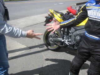 8:18 すでに集合 ちょっと遅刻しての到着だったので、みんなすでにおそろいです。 「みんな、遅刻してゴメン」<(_ _)> 右はご存じ、コシドラちゃん。(と言っても既にパパです) 左はコシドラちゃんの友達で今回初登場のワケさん。 マシンはUSインターカラーのR1限定車です。 |