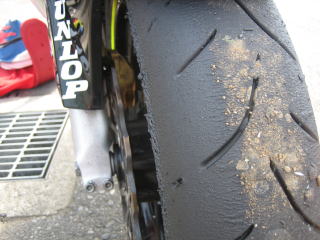 ブレーキングでズルーーーっと滑って「危なっ!」、やはり最初一皮剥けるまではそれほどグリップはしないみたいです。(^^;)