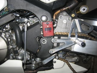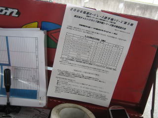 16:18 トランスポンダーを取付け 練習の終了後、受付をしました。 受付が受理されると、自動計測器(トランスポンダー)が渡されます。 (写真真ん中の赤い箱です) これを車体に取付けていると、レースへの気分が盛り上がってきますね。 |