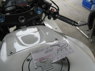 12:37 走行券は いままで、走行券はカウルにガムテープで貼っていましたが、他の連中を見ると、みんな燃料キャップのタブに挟んでいました。 「なるほど〜っ」て、気がつくの遅すぎ? |