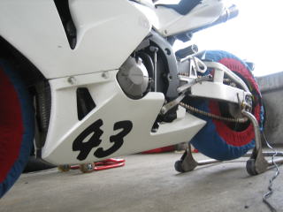 13:10 リヤタイヤ 今年から、アンダーカウルにもゼッケンを着けなければなりませんが、大きすぎました。(汗) (まあ、大きすぎて文句を言われることはないので良しとしましょう) |