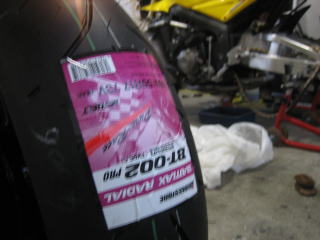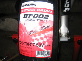 タイヤ:フロント BRIDGESTONE BT002(ミディアム) ユーズド 1.9キロ、