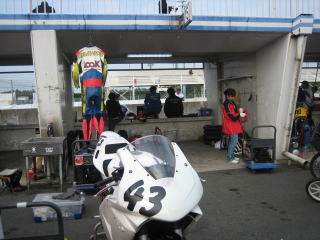 7:41 天高く馬・・・ 今日は朝から筑波サーキットは快晴です。 路面温度はまだ低いですが、めずらしく夜露もなく路面も乾いていてこの時期としては良好なコンディションです。 |