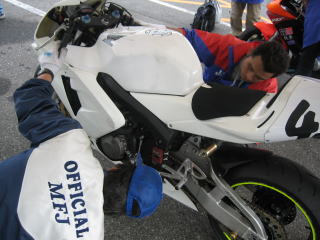 10:24 決勝前チャック いよいよ、決勝のタイムスケジュールの開始です。 まずは、決勝前の最後のマシンチェックに向かいます。 |