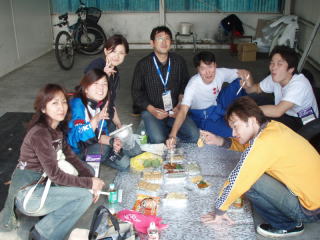 予選を終了して、応援にきてくれたオベリスクさん&その息子と雑談。 予選を終えて、決勝までの間、少しだけリラックス。 (写真はまるえさんから) |