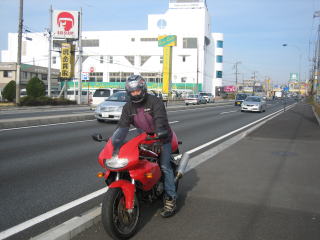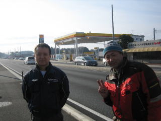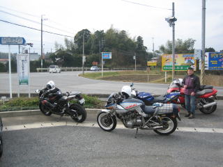 9:54 K2Yに到着 10時ちょっと前にK2Yに到着です。 K2Y出発は10時との連絡でしたので、時間に間に合いました。 K2Yにはすでに、すーさんとR1に乗っているエーっと^^;K2Yのツーリングに初登場の・・・・山口さんの2人が到着していました。 「明けましておめでとうございます」 |
