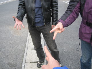 14:50 帰る途中、やまぐちさんのR1が急減速。トラブル発生です。 シフトペダルのリンケージボルトがとれて、シフトチェンジができなくなってしまいました。 とりあえず、オパミンが持っていたボルトを付けて、トラブル解消。のはずが・・・・・ 今度はアイスエイジさんが鍵を落としているのに気付きました。 どこかで、落としてきたようです。 アイスエイジさんの後を走っているときに、タバコが2、3本転がっているのを見かけたのですが、まさか鍵を落としているとは。\(-_-)/ |