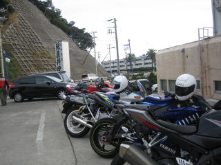メンバーです:アイスエイジさん(DUCATI)、オパミン(CBRのほぼ1000CC)、GSX-Sハマダさん(GSX-S カタナ)、