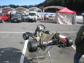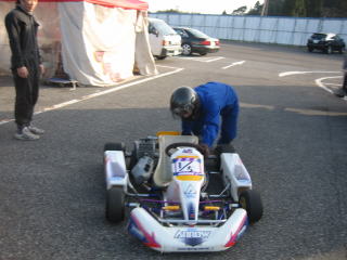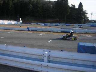 15:33 カマタ走ります まずは宮川さんのカートを借りての走行です。 自分も無意識のうちに体が中に入ってしまいます。 (カートは車体が軽いので、あまり体を動かすと特性が変わってしまうらしい) ちなみに約5年ぶりのカート、自分もろくに”押しがけ”ができませんでした。(^^;) |