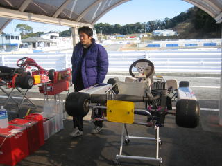11:35 伊藤さんです 伊藤さん、私の友人です。 約6ヶ月ほど前にタバコをやめて、現在禁煙続行中。 今日は蒲田に集合して一緒に茂原サーキットまでやってきました。 昔初期型のTZR(1KT)に乗っていた時期があってアイスエイジさんとも顔見知りです。 今日はカートに乗れると言うことで、電話でお誘い、1年ぶりぐらいの再会になります。 |