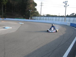 11:45 茂原のカートコースです。 メインストレートから1コーナーに向けて緩い上り坂です。 この1コーナーはアクセルを戻すだけで、ノーブレーキで入っていくみたいです。 (自分には恐くて、とても真似できません(*_*) |