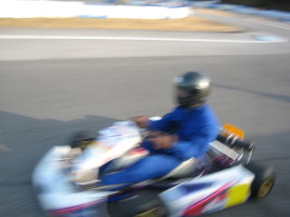 15:09 スピード感 どうもカートはバイクと違ってバンクしないので、写真を撮ってもスピード感が伝わりません。 ちょっと、流して撮ろうとしましたが、それはそれ、バカちょんデジカメじゃ単なるピンぼけ写真しか撮れません。(-_-;) |