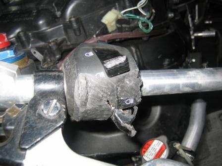 | 18:54 ウインカースイッチ 大破! これでは、もう役にたたないので新品交換。 |