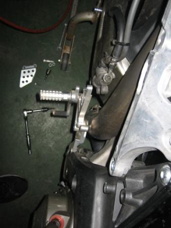 | 20:46 左ステップ 転倒したときに、左右両側(ついでに上部まで)路面と仲良くしちゃったので、ステップも両方曲がっちゃいました。 写真だと良くわからないですが、左ステップは後方に曲がってます。 ステップはホルダーごと取り外して、万力に加えて直しました。 面倒くさいからって、フレームに付いたままで、力まかせに「えいっ!」って直しちゃダメだそうです。 「えいっ!」ってやったら、ステップが曲がらずに、フレームがパキッとかいって逝ってしまうことがあるそうです。(アイスエイジさん談) (それは恐ろしいことです) |