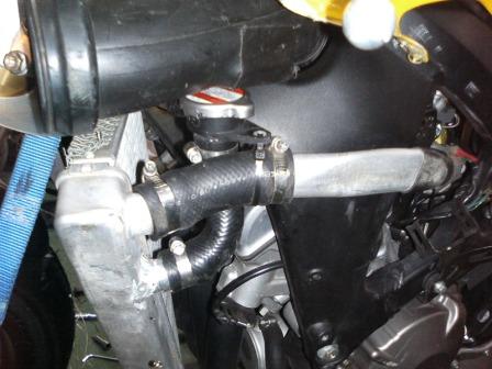 | 17:07 エンジン始動・確認 ラジエータに水を入れ、ガソリンを入れて水漏れがないか、確認。 とりあえず、アイドリングと軽いレーシング程度では問題はなし。 あとは、サーキットに行って実際に走ってみて、確認するしかないかな。 |