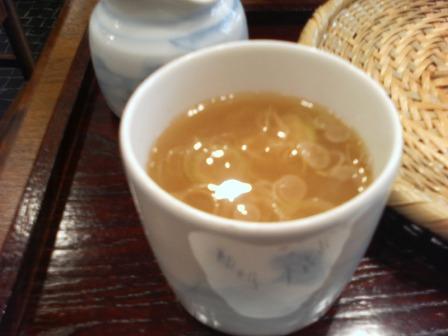 | 13:09 そば湯は 蕎麦を食べた後の、そば湯は至福のひととき。 ここのそば湯は、かなり濃くねっとりしています。 おそらく、そばのゆで汁ではなく、別にちゃんと作っていると思います。 自分は蕎麦には薬味を使いませんが、そば湯にネギや山葵を入れていただくのが好きです。 ここで、一品増えたような気になります。 |