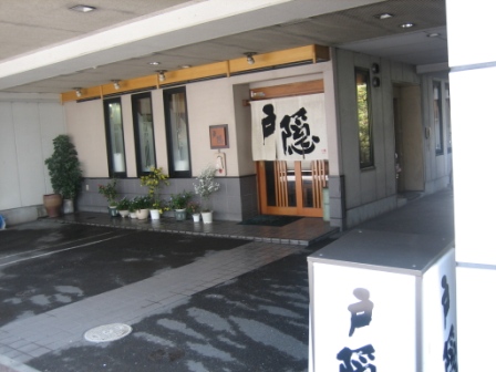 お目当てのお店に到着です。 お店の名は「戸隠 駿府店」。 そうです。今月の初めにツーリングで行った、長野県の蕎麦の里「戸隠」の名前を取ったお店です。 この戸隠と言う名のそば屋さん、静岡市内に本店があり、暖簾分けをして静岡県内に7店舗フランチャイズ展開をしています。 男レーシングさんの話では、この駿府店が仕事が丁寧で一番美味いと言うことです。 |