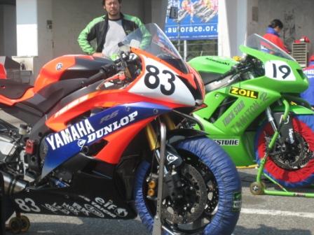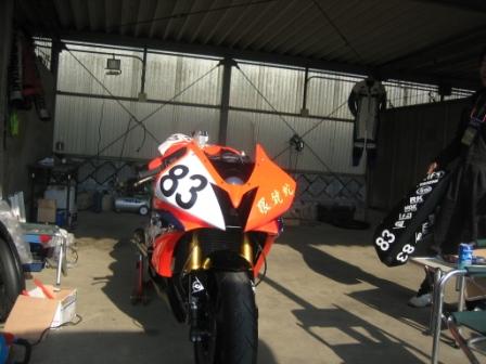 | 7:41 忠夫カラー 筑波サーキットに到着しました。 まずはオパミンが待っているガレージに向かいます。 No83はオパミンのゼッケン、バイクは忠夫カラーのR6。 そう、知っている人は知っていますが、今年オパミンは忠夫レーシングからエントリーしまーす。 マシンは去年國川選手が乗っていたR6らしい。 |