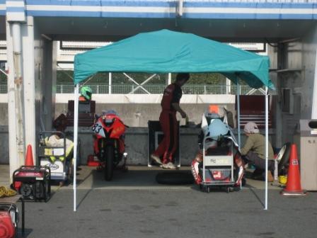 | 7:59 パドックに移動 車検準備のために、ガレージからパドックに移動しました。 今日の車検は8時40分から。 いつもよりノンビリの時間進行です。 |