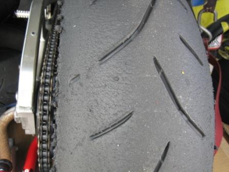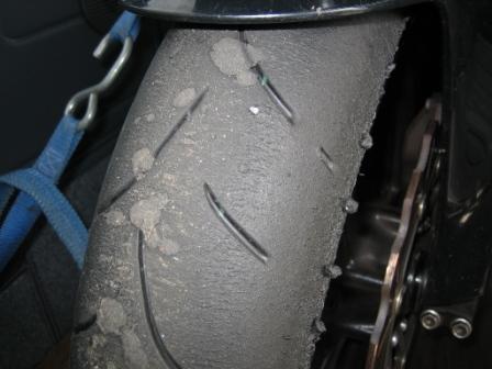 | 11:42 終了後 2本終了後のタイヤです。 ここまでで、トータル327kmほど走りました。 ボチボチ終わりですが、次回はエビスサーキット、スペアホイルも手に入れたので、使い切ろうと思っています。 |