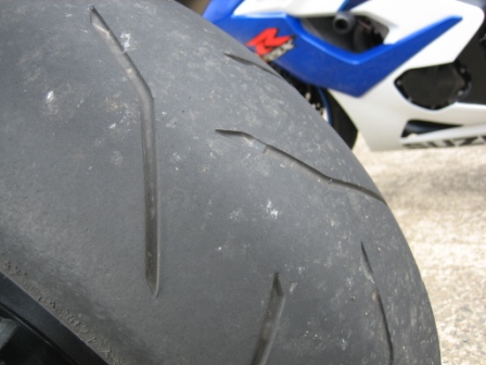 | 10:42 タイヤが 気が付けばタイヤがありません。 スリップマークがもう少しで出ちゃいます。 今回のツーリングが最後ですね。 |