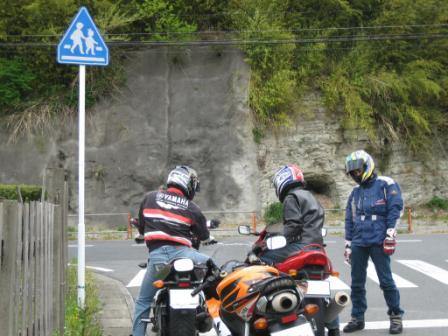 | 13:55 帰路 御宿町を出発して、養老渓谷の近くまで戻ってきました。 今日はスーパースポーツ車ばかり、かなり良いペースで走っています。 K2Yツーリング初参加の加納くんはちょっと遅れ気味、T字路でちょっと待ちます。 でも、気にすることはないですよ。 写真に写っている3名は百戦錬磨の連中ですから、まだまだ加納くんには未来があります。 途中で、ドカを試乗した國川くん、ドカのハンドリングに対して、しきりに「おもしろい!」を連発していました。 |