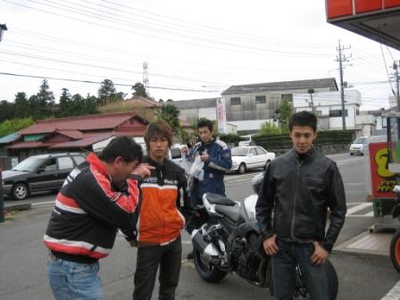 メンバーです:アイスエイジさん(DUCATI)、加納 くん(GSX-R1000K5)、國川 くん(FZ)、Ryo@Mさん(CBR1000RR)