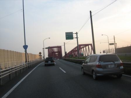 | 17:38 木曽川 大府からは国道23号線を四日市方面に走り、愛知県を通過し三重県に入り木曽川まできました。 今日宿泊する白子まではもう少しです。 |