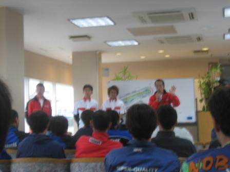 | 10:23 ライダースブリーフィング 10:10からはBSからライダースブリーフィングがありました。 自分とアイスエイジさんは速い連中の雨の中の走りを見ていて、遅刻して出席になっちゃいました。 色々とためになる説明があったようなのですが、聞き逃しました。 最後の方に、ウエットコンディションから天候が回復した場合、筑波などではレース中に完全にドライになるまではならないそうで、そんなときは、「フロントにレイン、リヤにドライ」と言う選択肢もあると言うことでした。 なので、天候がわからない時は、フロントにレイン、リヤにドライを履いておいて、天候により、ドライに履き替えたり、レインに履き替えたりすれば良くて、最悪でもそのまま出走すると言うことですね。・・・・レースやっている人には常識か! |