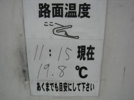 | 11:31 コンディションは 気温16.9℃ 路面温度 19.8℃ 走行ラインはかなり乾いてきましたが、ハーフウェット状態で、ラインを外れたところはまだウエットです。 |