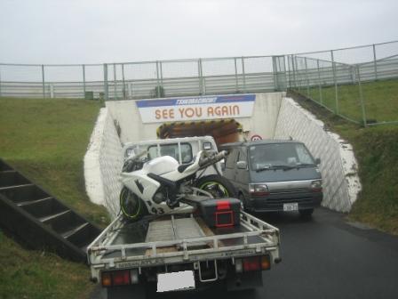 | 13:08 撤収 撤収です。 今日は雨の中の走行、初めて履いたレインタイヤなど、いい勉強になりました。 この歳になっても、まだまだ体験していないことは沢山あります。 この後、アイスエイジさんと守谷のゆきむら亭へ、途中から突然の激しい雷雨、午後に走行を予定していた街乗り一般車の人たちは大変だったことでしょう。(まさに他人事) お昼を食べた後、アイスエイジさんとは解散しました。 |