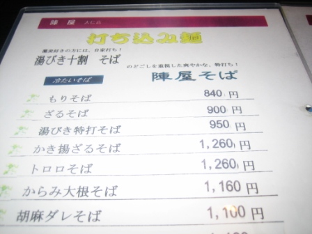 | 12:31 注文は 注文は・・・何にしようか少々迷います。 完全に蕎麦の味を食べさせるお店であれば”せいろ”を注文しますが・・・ 今日は蕎麦食いではなく、ツーリングがメイン、難しいことは考えずに、他の人が注文した”かき揚げ天ぷらそばの大盛り”¥1,700也にしました。 |